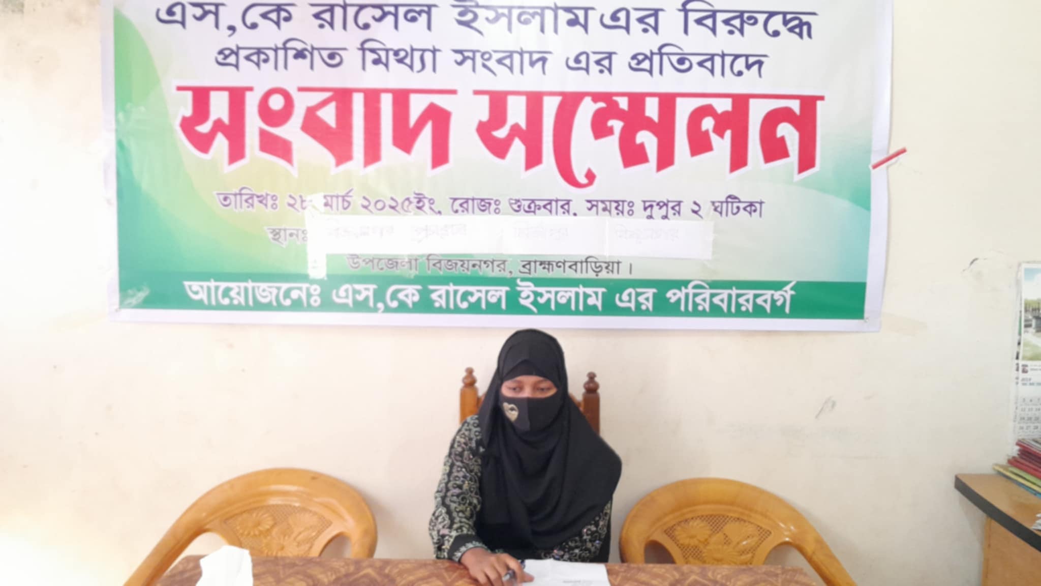 . এরই প্রেক্ষিতে সৌদি প্রবাসী একই গ্রামের বাসিন্দা এস, কে রাসেল ইসলাম এর স্ত্রী শরীফা আক্তার (মালা) সংবাদ সম্মেলনে বক্তব্য রেখে বলেন,গত কয়েক দিন ধরে বিভিন্ন প্রিন্ট ও ইলেক্টনিক মিডিয়া,ইউটিউব ও ফেইজবুকে ফেক আইডি দিয়ে আমার স্বামী এস, কে রাসেল ইসলাম এর নামে মিথ্যা সংবাদ প্রচার করছে। একটি কুচক্রী মহল অসৎ উদ্দেশ্যে ইষান্নীত হয়ে সমাজে আমাদের দুর্নাম রটিয়ে ক্ষতি করার ক্ষীন স্বার্থে আমার স্বামী ও আমার পরিবারের মানসম্মান ক্ষুন্ন করার জন্য। মিথ্যা সংবাদ প্রচারের জন্য আমি আমার পরিবারের পক্ষ থেকে, ইহার তীব্র নিন্দা ও প্রতবিাদ জানাই। আজকের সংবাদ সম্মেলনে আপনারা সাংবাদিক ভাইদের মাধ্যমে ইহা প্রচারের জন্য অনুরোধ জানান।