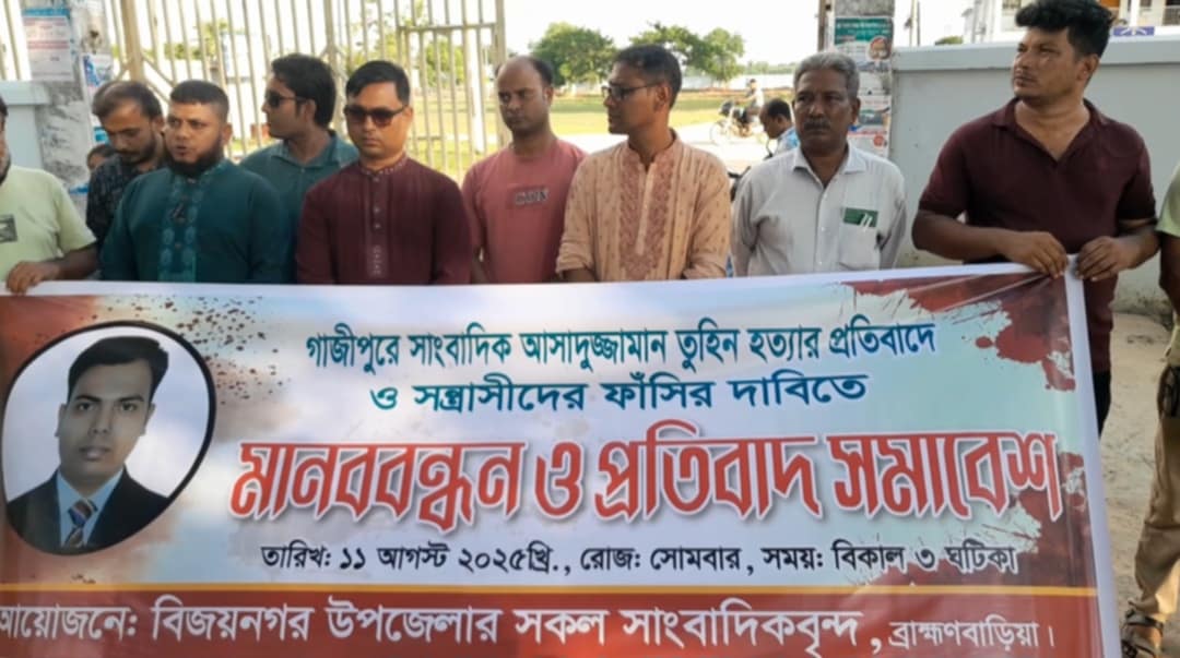 ব্রাহ্মণবাড়িয়া বিজয়নগরে তুহিন হত্যার প্রতিবাদে সাংবাদিকদের মানববন্ধন অনুষ্ঠিত