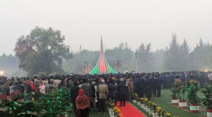 মঙ্গলবার (১৬ ডিসেম্বর) সূর্যোদয়ের সঙ্গে সঙ্গে মুক্তিযুদ্ধ স্মৃতিস্তম্ভে ৩১ বার তোপধ্বনির মধ্য দিয়ে বিজয় দিবসের আনুষ্ঠানিকতা শুরু হয়।