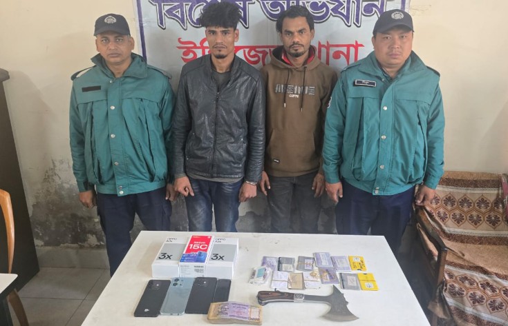 গ্রেপ্তাররা হলেন – মোঃ কফিল উদ্দিন (৩২) এবং নুর উদ্দিন প্রকাশ সেকুল (৩৩)। এসময় তাদের কাছ থেকে চাইনিজ কুড়াল ও ছোরা এছাড়াও ছিনতাইয়ের ১লাখ টাকা উদ্ধার করা হয়।